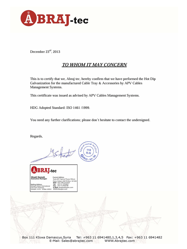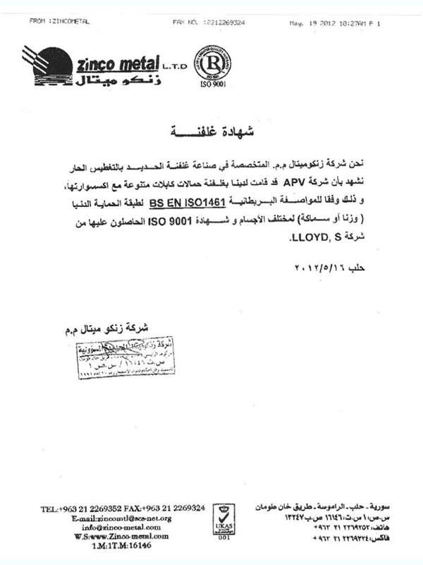 Galvanization Certificate