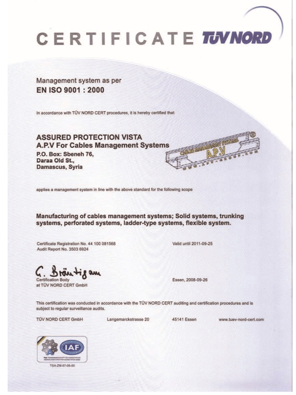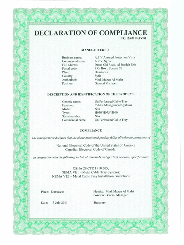APV Certificate Electrical Panel